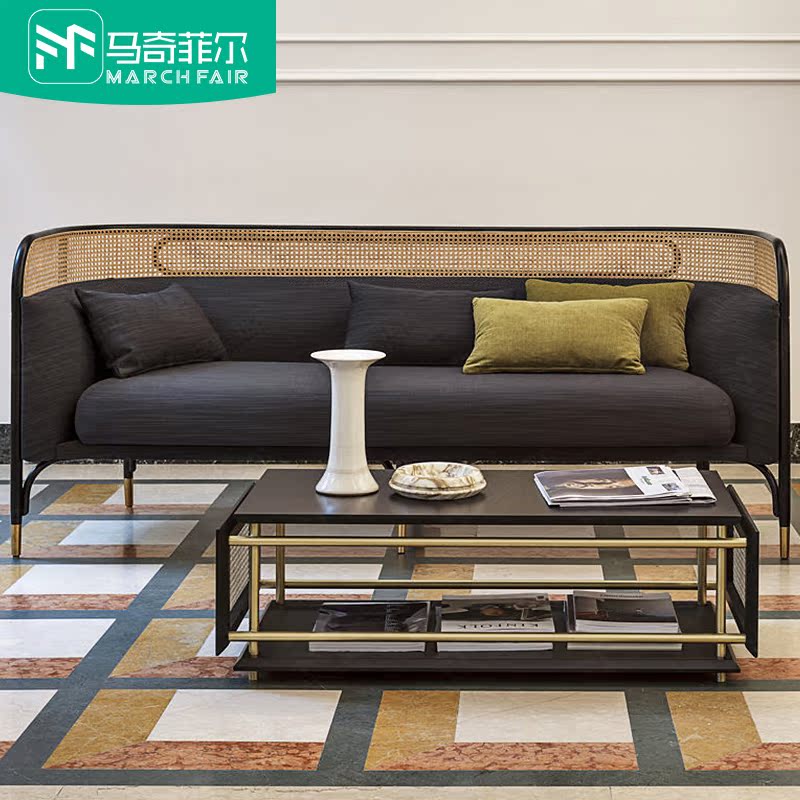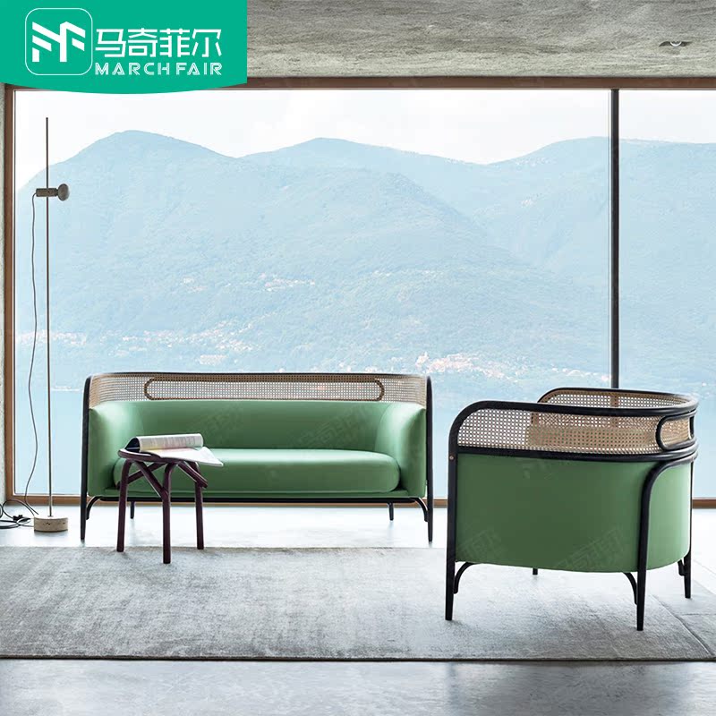 Marchfield rattan sofa combination living room real rattan leather art sofa small apartment rattan rattan Nordic three-person sofa - Taobao