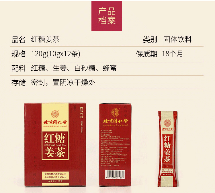 Beijing Tong Ren Tang brown sugar ginger tea Brown sugar Physiological period ginger honey Old ginger sachet official website brown sugar 120g