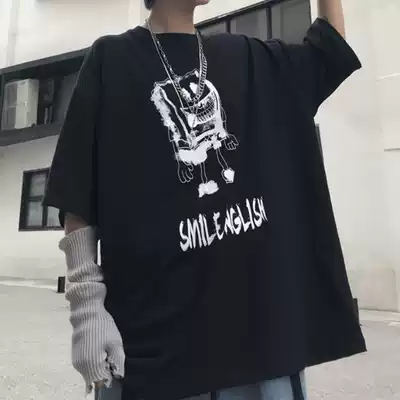 2020 net red Harajuku short-sleeved T-shirt men's trend ins five points Hong Kong style personality trend Korean loose top clothes handsome