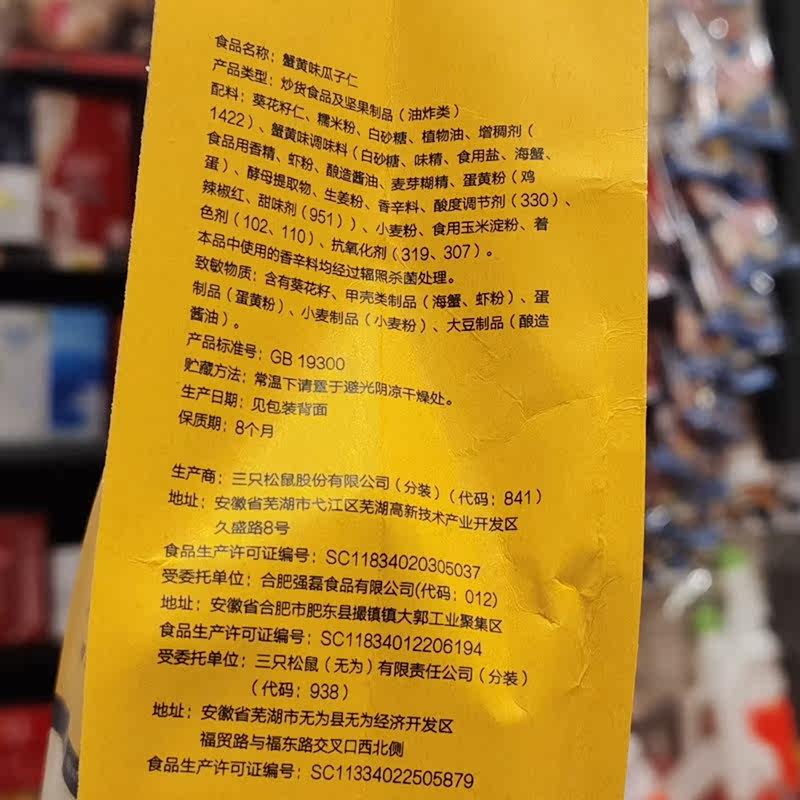 Three Squirrel Crab Yellow Taste Melon Seeds 218g * 2 Bagged Nuts Fried Goods Casual Snack specie Dried Fruit Sunflower Seeds