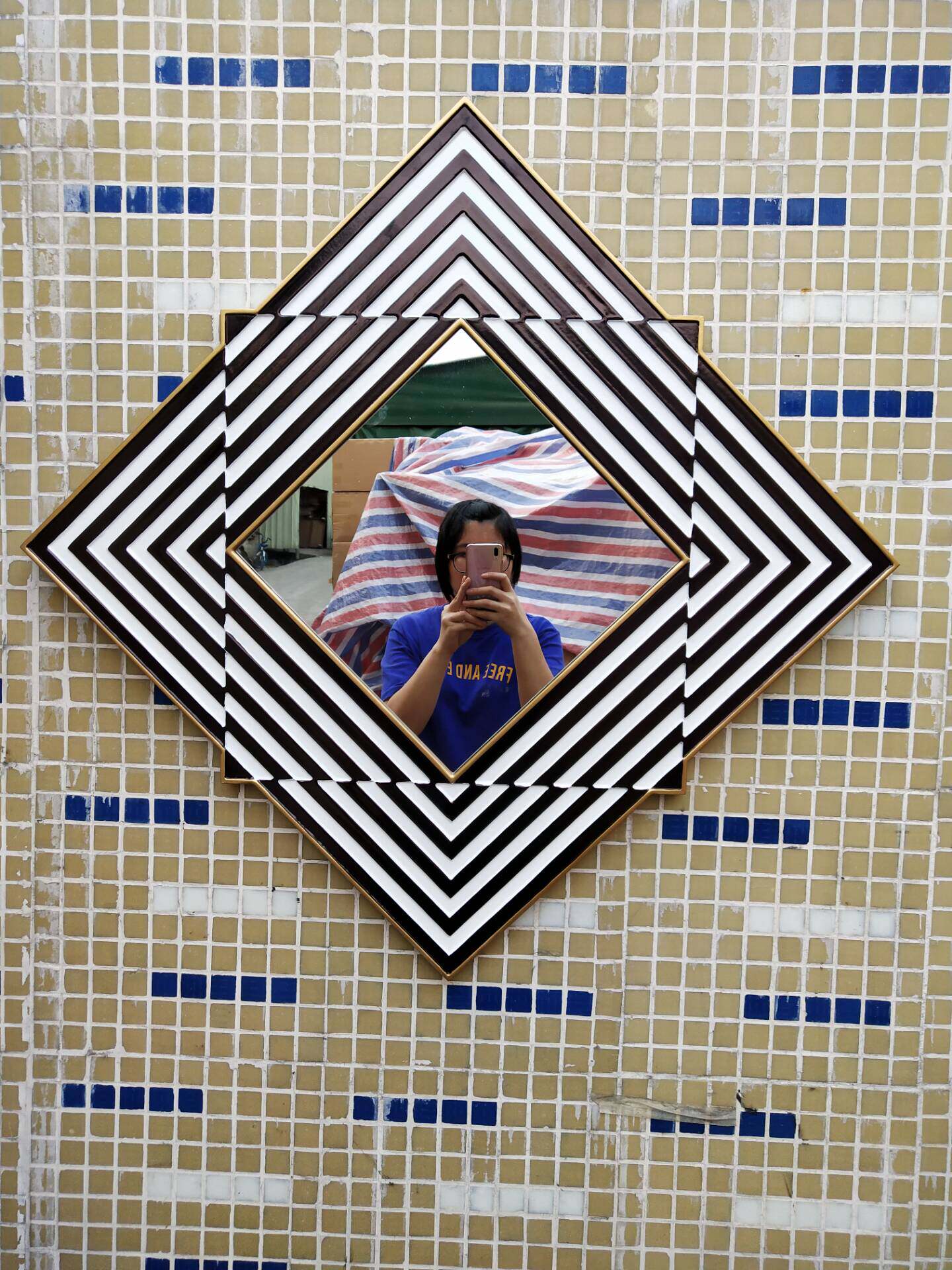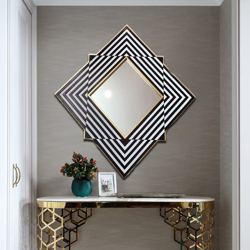 American exhibition hall Hangonguan mirror Living room hanging Decorative Mirror Bathroom Makeup Doors Hall Art Mirror Black & White Striped Mirror
