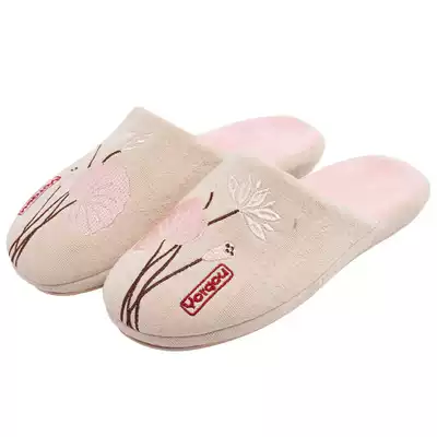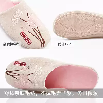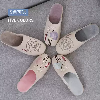 Far Hong Kong cotton linen autumn slippers women's four seasons home Baotou does not show toe ethnic embroidery indoor autumn home
