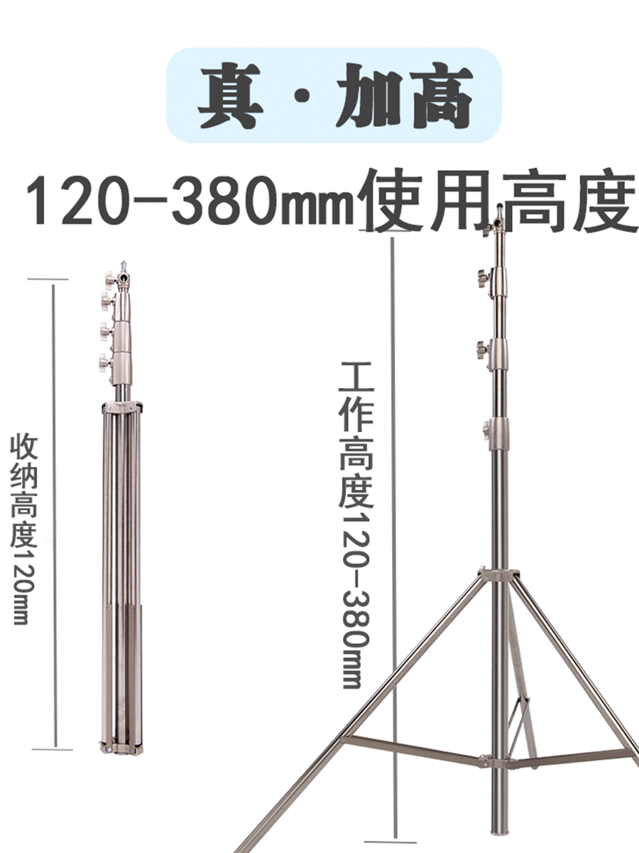 389S enlarged stainless steel photographic lamp holder led flash spotlight film and TV lamp large bracket 3 8 m high