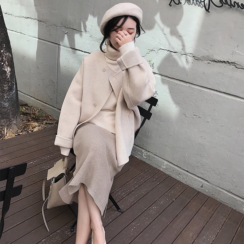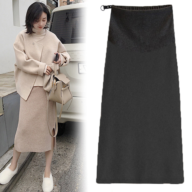 Pregnant women skirt Korean version knitted slit women's autumn 2021 new package hip skirt mid-length version autumn and winter pregnant women's skirt tide