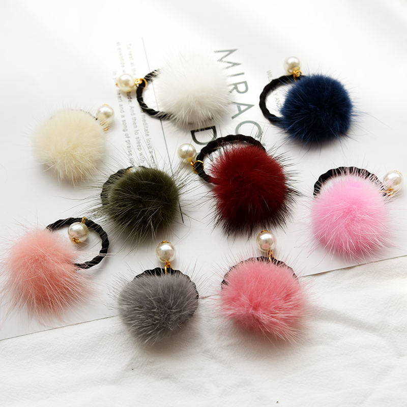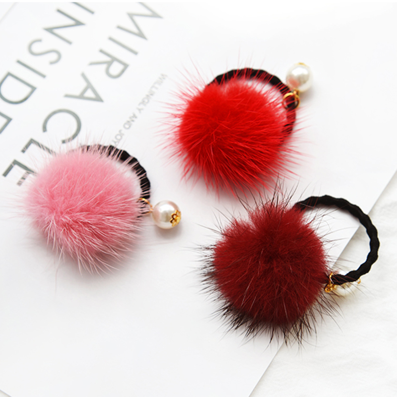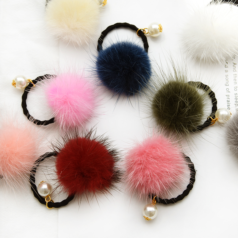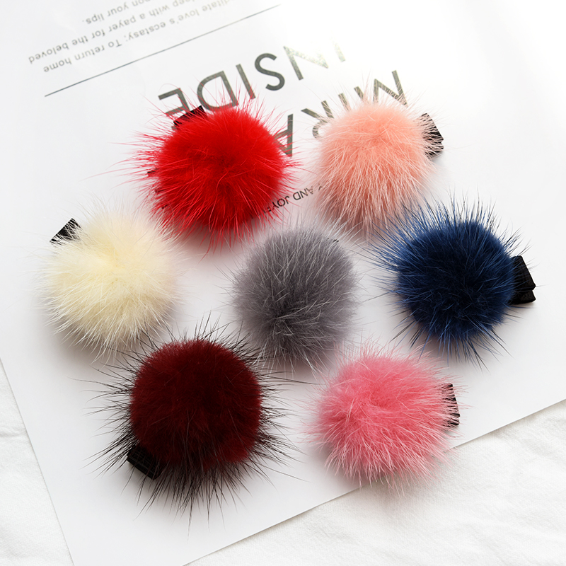 Senmi Rabbit Children Hair Clip Leather Ring Hair Ring Hair Princess Fur Hairball Hairpin Hair Clip Children Hair Accessories Baby Baby's Young Hair Accessories