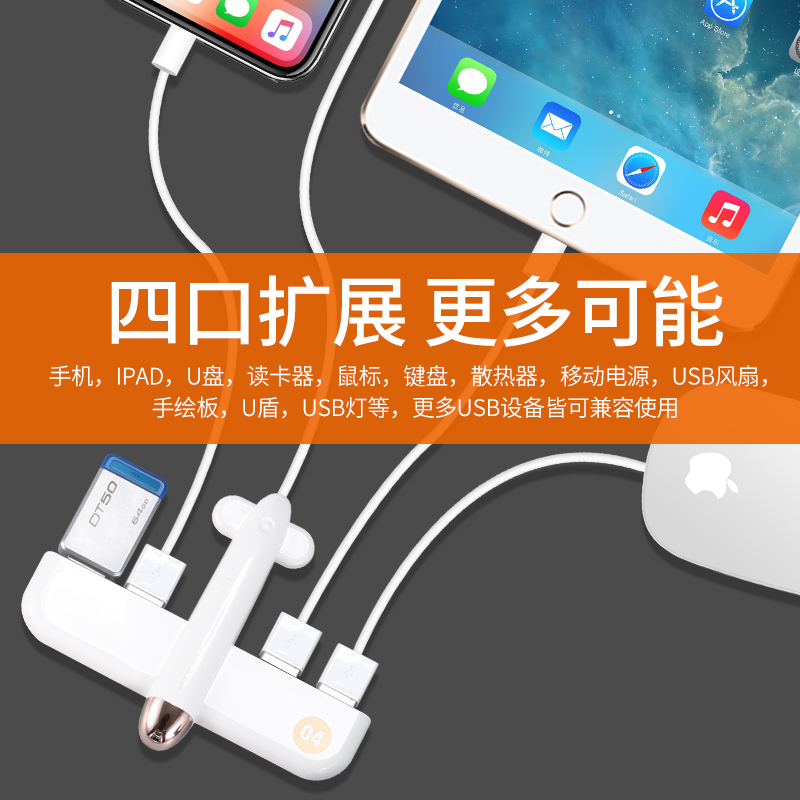 Motorway small aircraft USB extension charger splitter one drag four multi-function adapter hub laptop car mouse expansion dock external U disk conversion extension cable logo customization