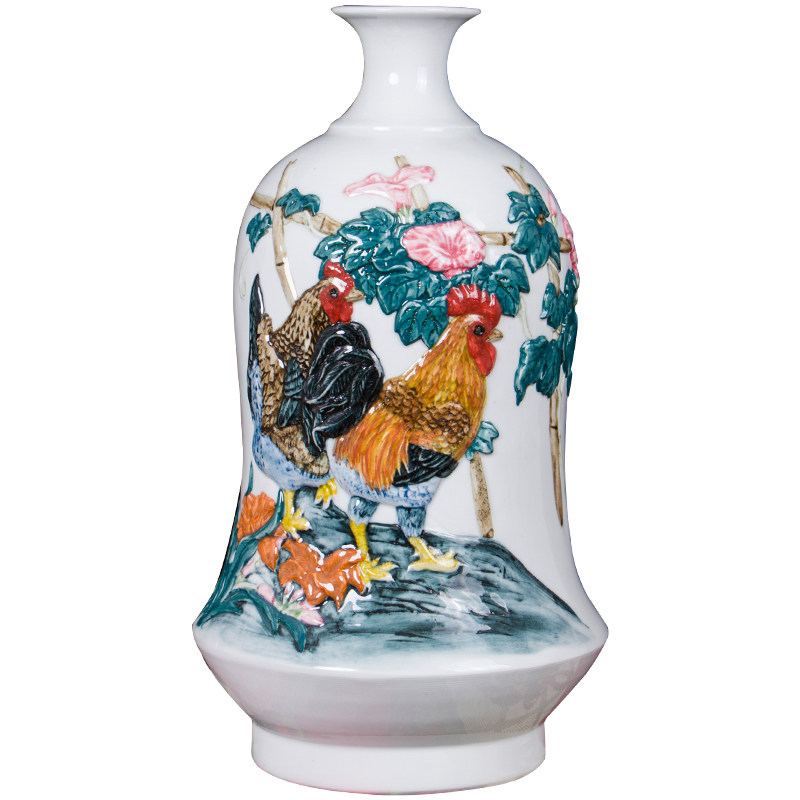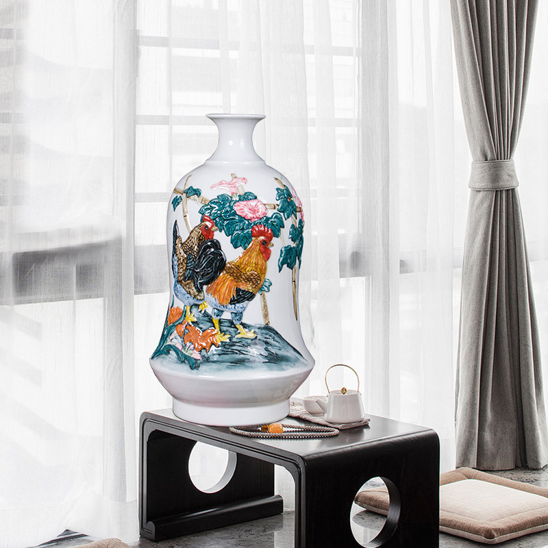 100 Porcelain House New Chinese Rework Engraving Autumn Garden Raw Xiao Chicken Ceramic Vase Swing Piece Living Room Xuanguan Bogu Rack
