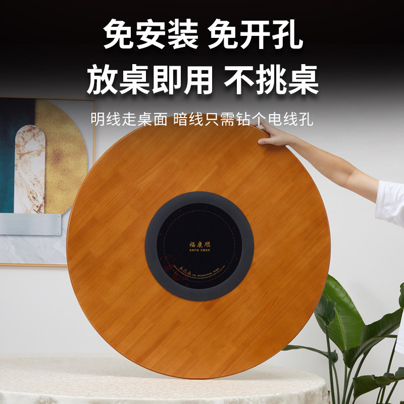Fukangshun induction cooker turntable round table wooden turntable Home non-solid wood with induction cooker integrated electric turntable