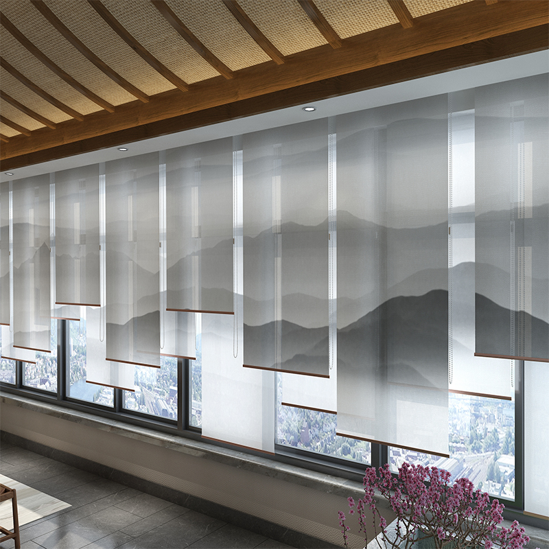 Modern Chinese roller shutter Xuanguan Curtain Hanging Screen Soft Partition Floor Window Curtain hotel Dining Room Soft Dress Semi-Through Curtain