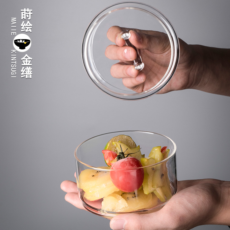 Glassware Creative salad cover bowl combination Multi-layer storage bowl Japanese salad bowl with lid Simple glass tableware