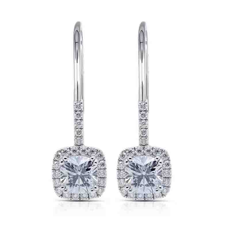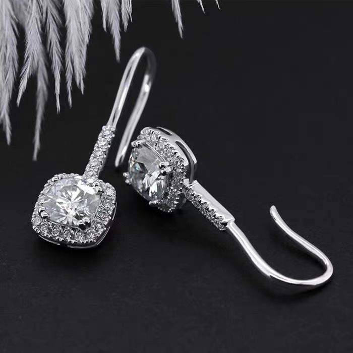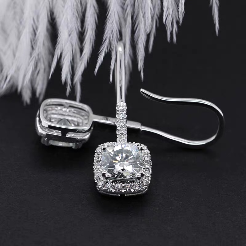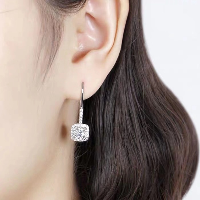 24K Platinum Luxury Group Inlaid Mosanstone Earrings PT950 Square Ear Pin Woman Round Bag Earrings Earrings