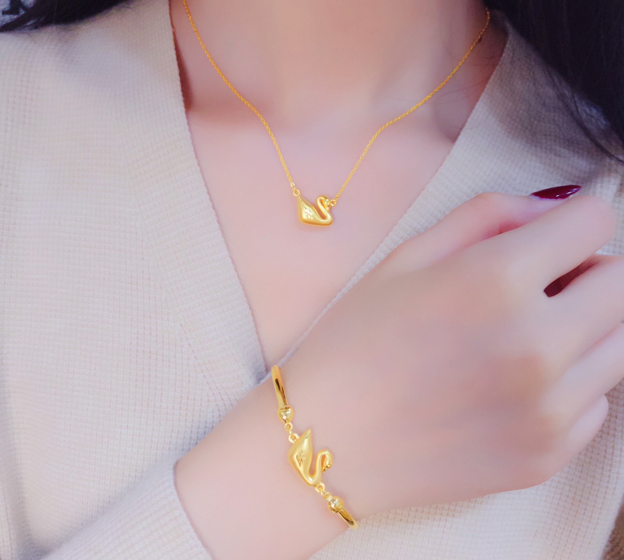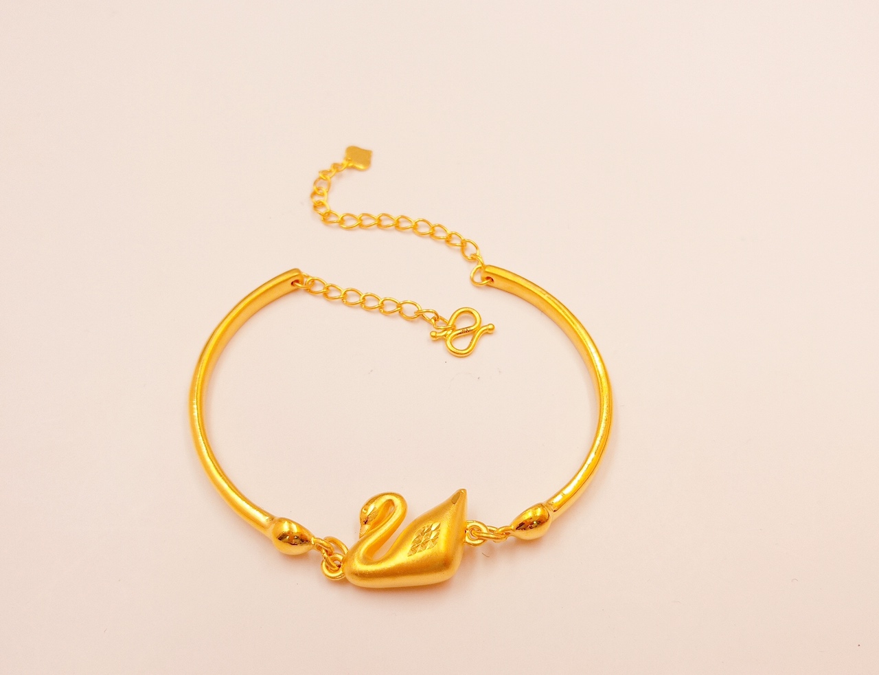 Foot Gold 999 Pure Gold Fashion Swan Gold Handmade Half Bracelet Transit Pearl 3d Hard Gold Female Jewellery New