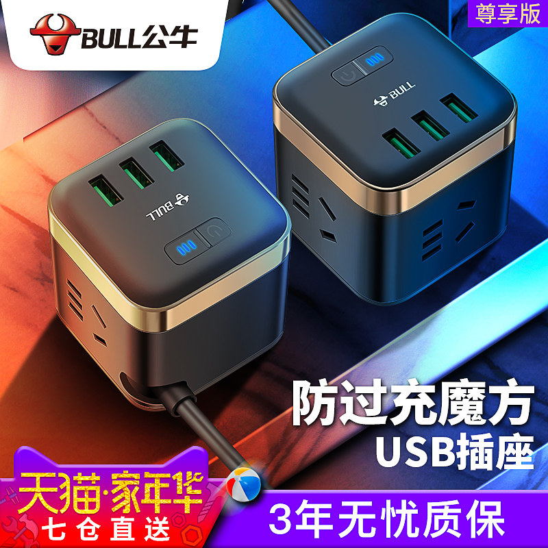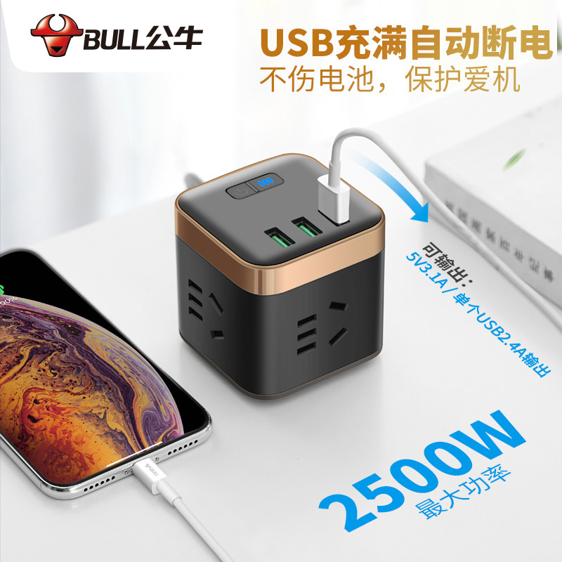 Bull full of automatic power-off charger intelligent anti-overcharging magic Cube with usb fast-charging multiple outlet socket suitable for Apple 11pro XR Huawei oppo Honor Xiaomi Phone Universal plug