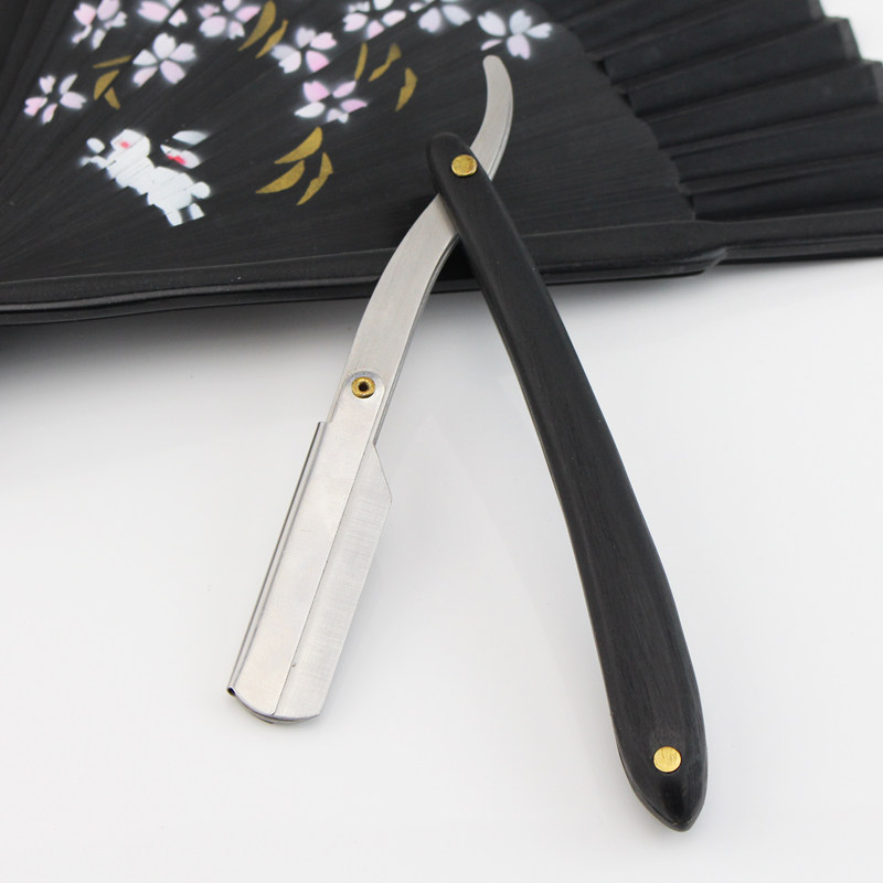 Professional Hair Salon Scraper Holder Solid Wood Handle Small Old Beauty Hair Razor Haircut Shop Shave With Side Knife Shave Knife