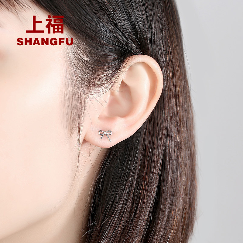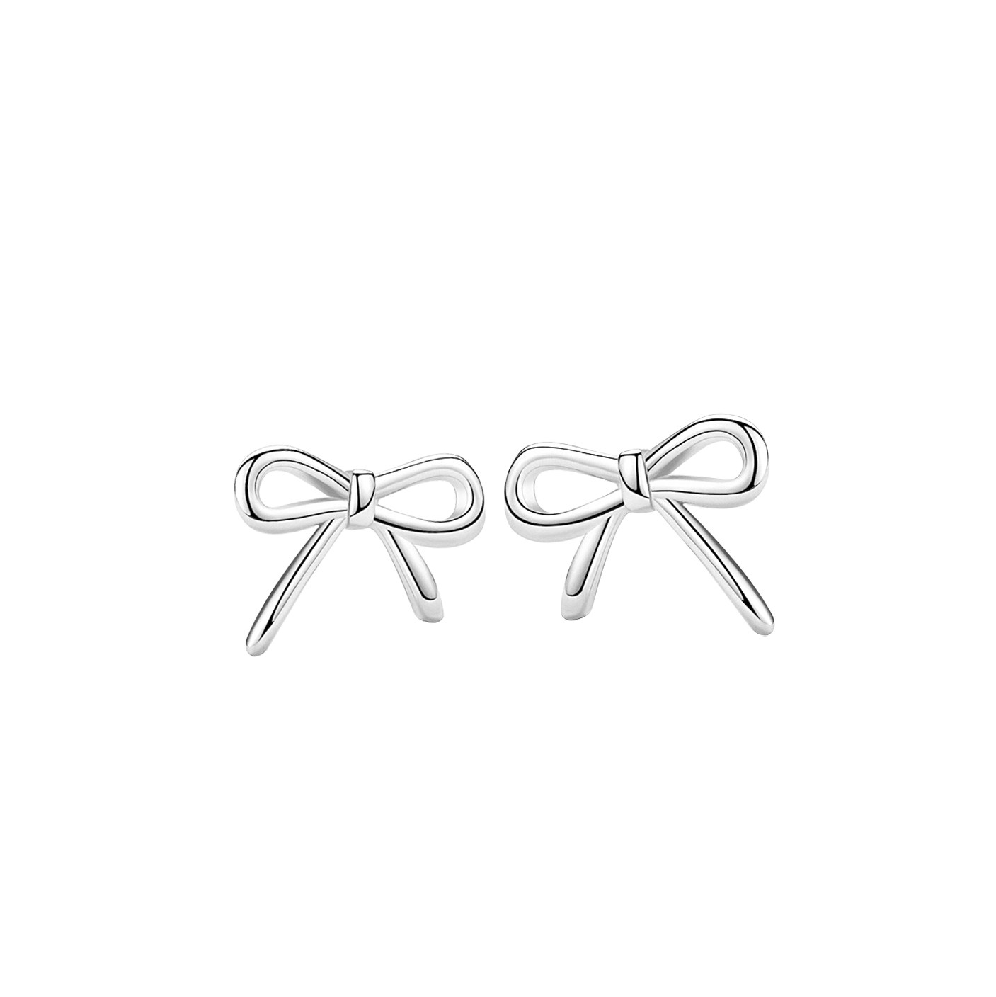S999 Sterling Silver Stud Earrings Women Korean Simple Bow Silver Earrings Small And Exquisite Design Niche Net Red Earrings