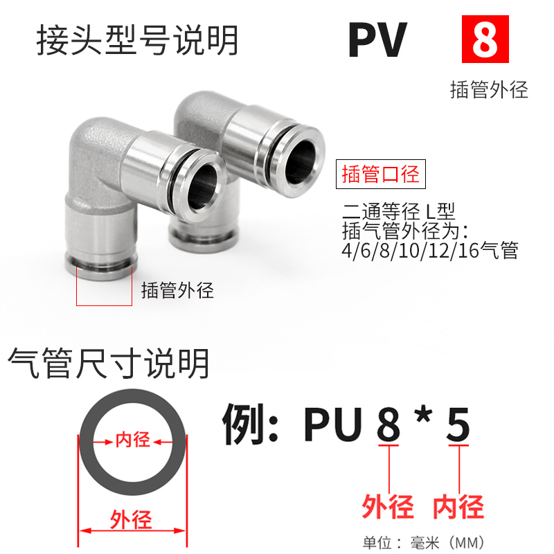 304 stainless steel bending right angle joint pneumatic elbow PV6 8 10 12 16 hose quick insert quick gas nozzle