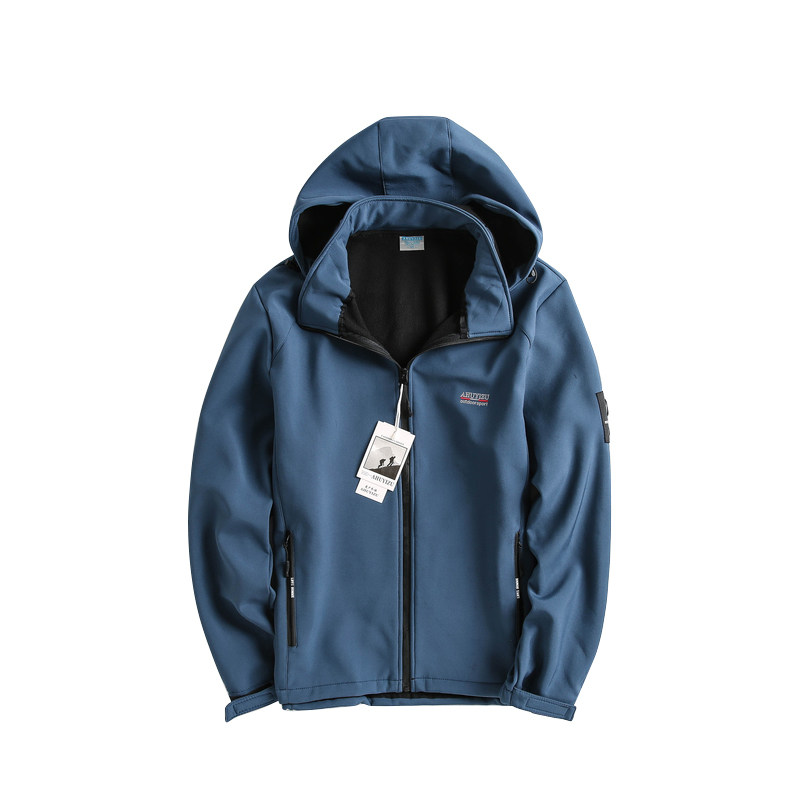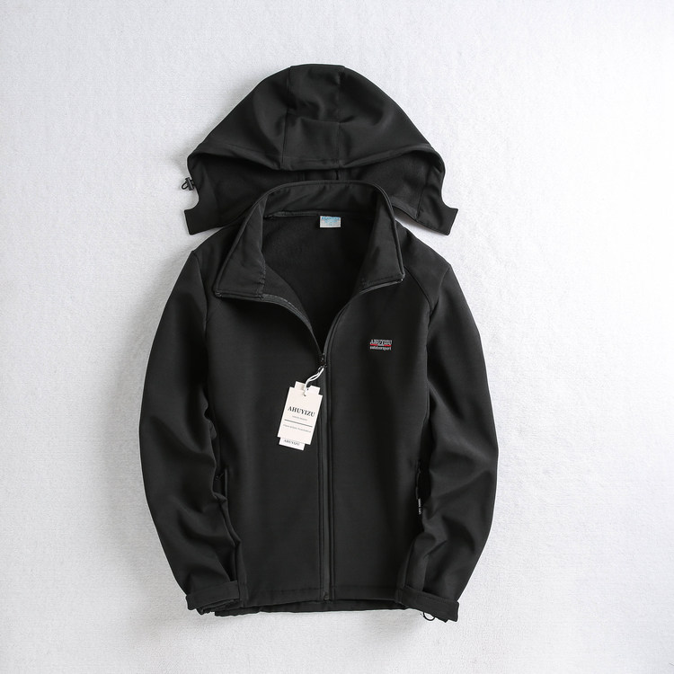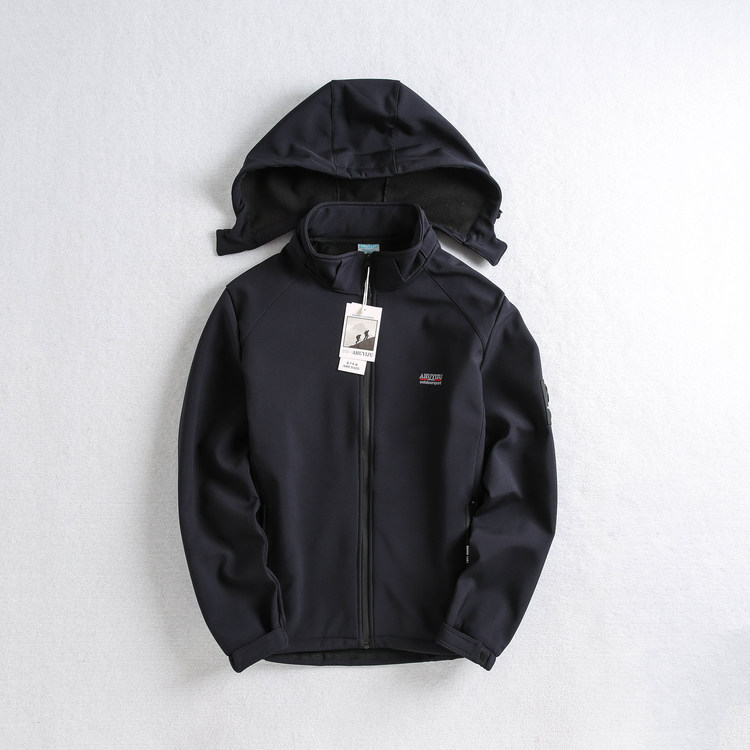 Foreign trade tail single spring and autumn men's outdoor soft shell jacket fleece windproof jacket hooded warm mountaineering suit large size