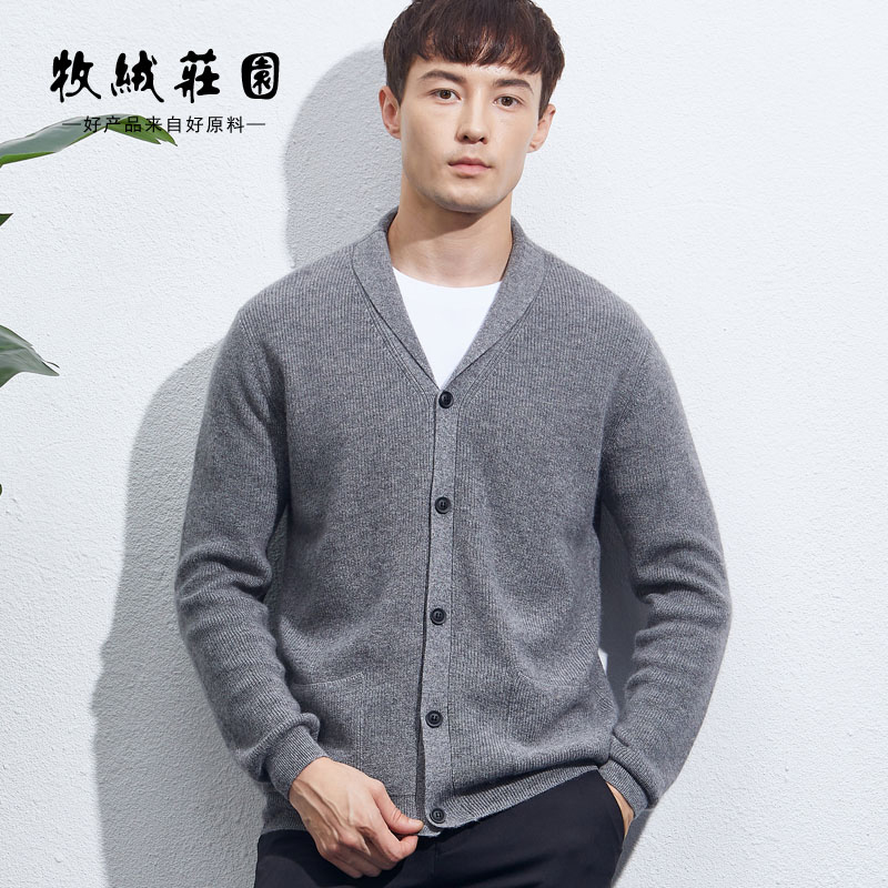 Fall/winter men's padded cashmere sweater cardigan green fruit collar sweater coat middle-aged Joker loose casual sweater
