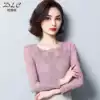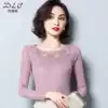 Lace base shirt Women's inner tie autumn and winter low-collar mesh top hollow slim large size Foreign style small shirt Fashion T-shirt
