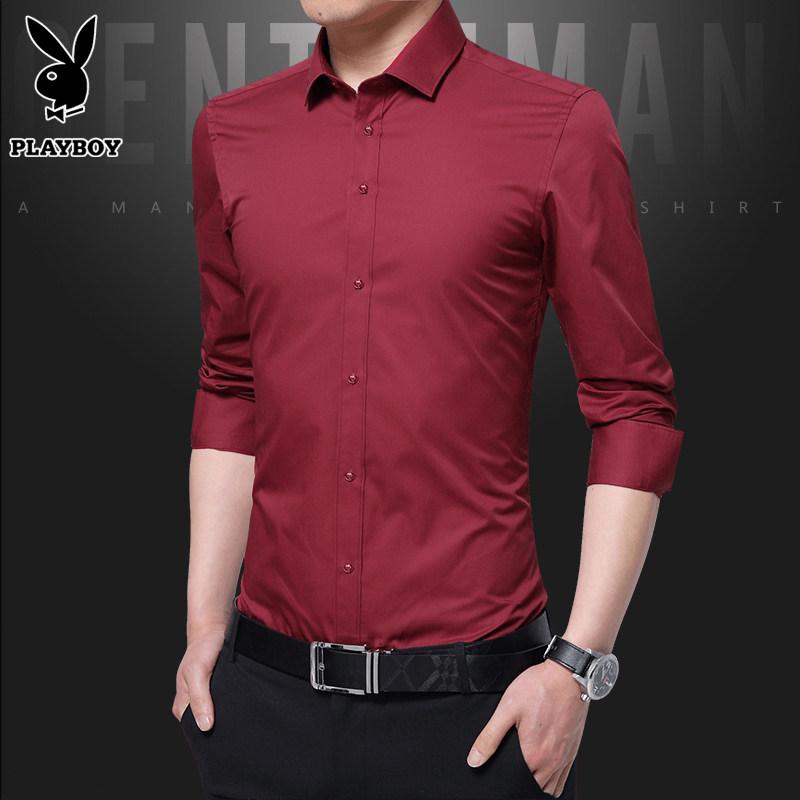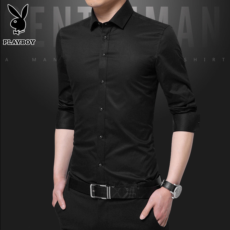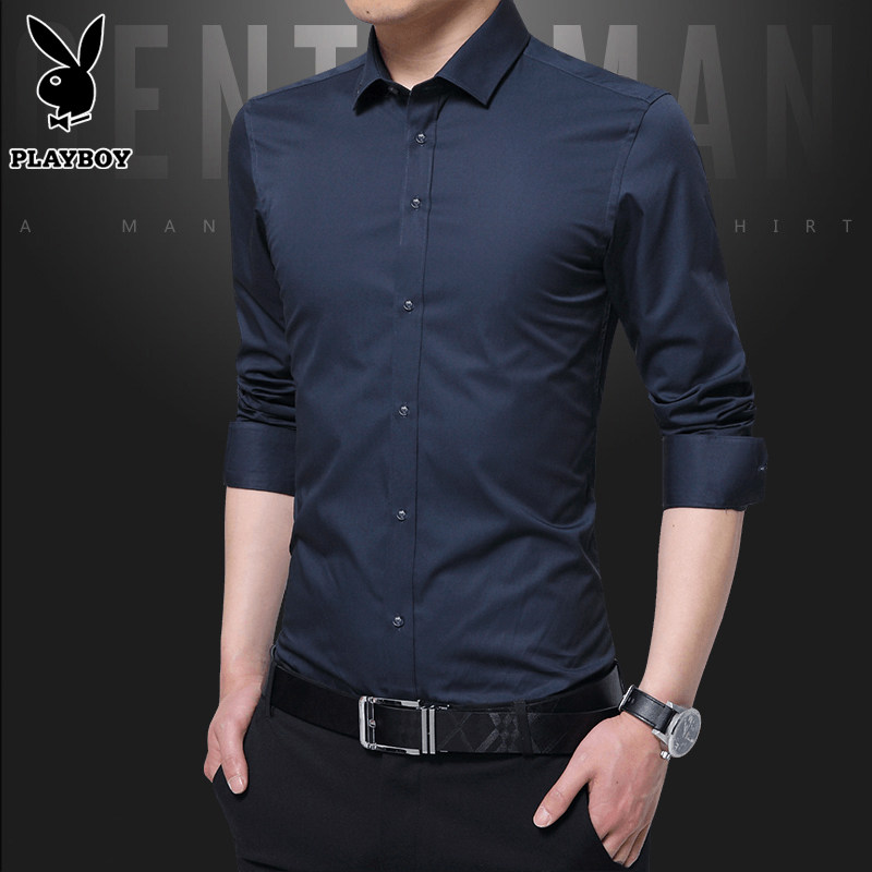 Playboy men's business casual professional dress shirt Spring and autumn long-sleeved white shirt men's slim bottom shirt