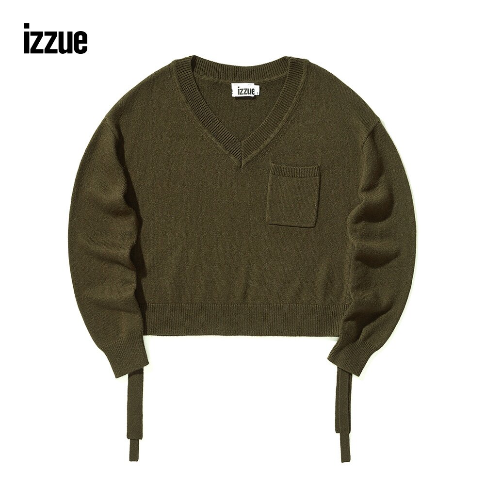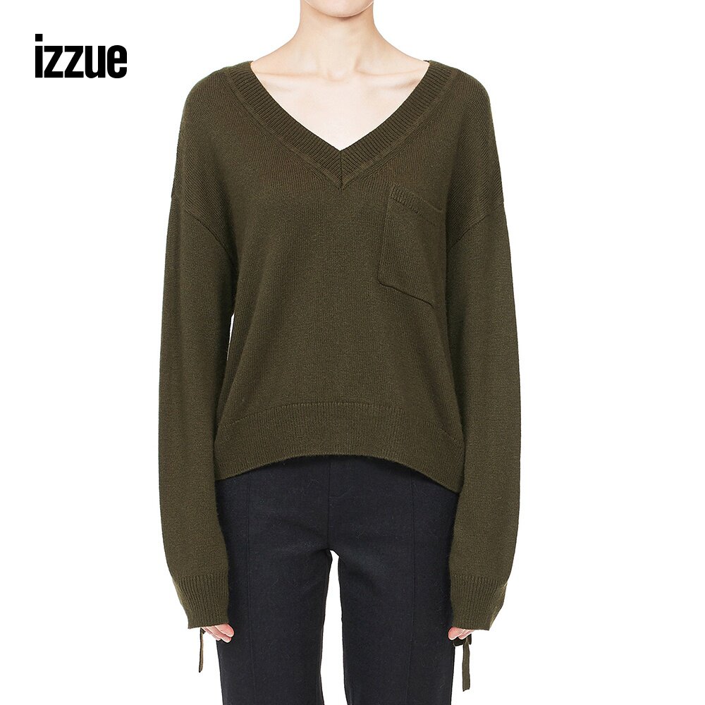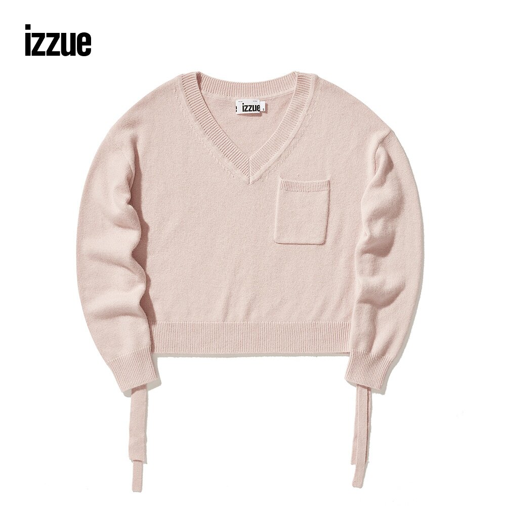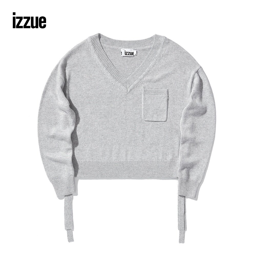 izzue female clothing stitch sweatshirt autumn casual temperament V collar fashion floating with bag accessories 4100F9D