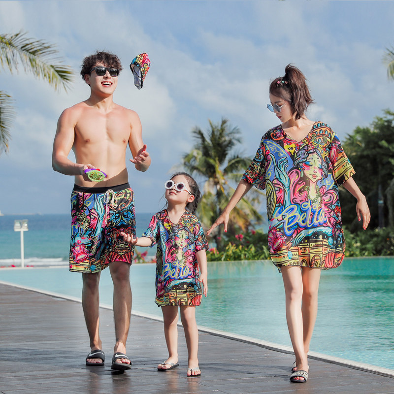 Women's flower color Girls' flower color Men's pants Flower color Women's color Men's pants Color Girls' polka dot four-piece set Men's pants polka dot girls polka dot three-piece set