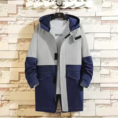 Medium and long version of the jacket plus fat plus size student tooling jacket plus velvet thickening Korean version of the trendy handsome men's wind clothes