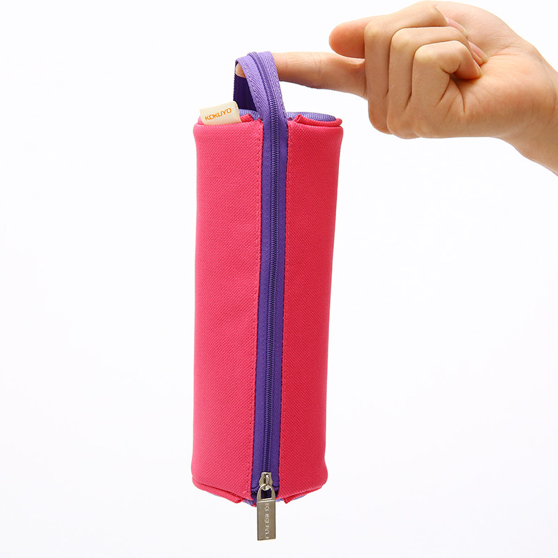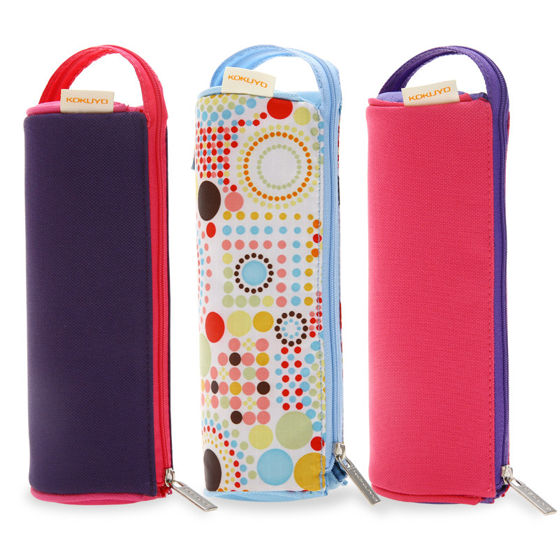 Japan KOKUYO Guoyu PC62 folio cylindrical pen bag simple round can be upright extended with handle student pen bag stationery box pen holder round stationery bag primary and secondary school students with portable