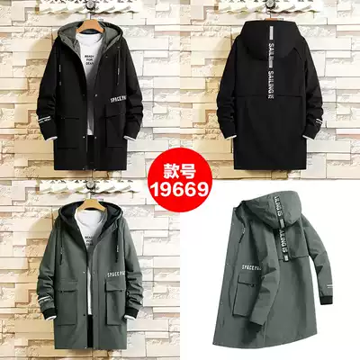 Men's coat Spring and Autumn Winter thick hooded windbreaker loose fat plus size fat casual medium and long clothes