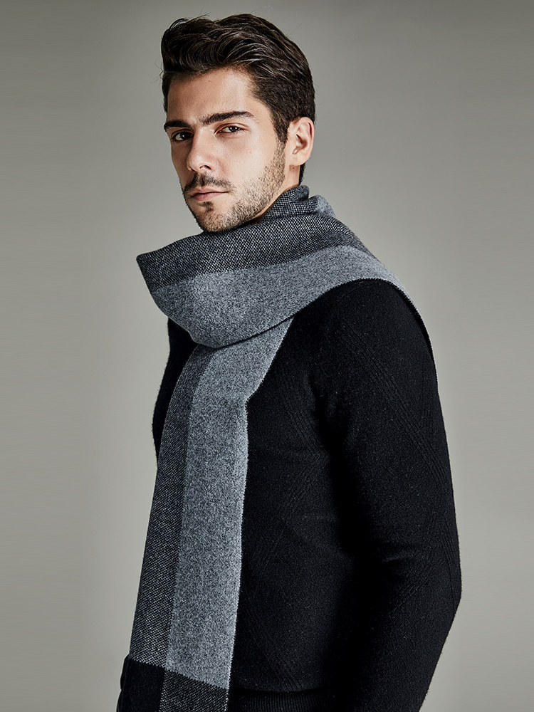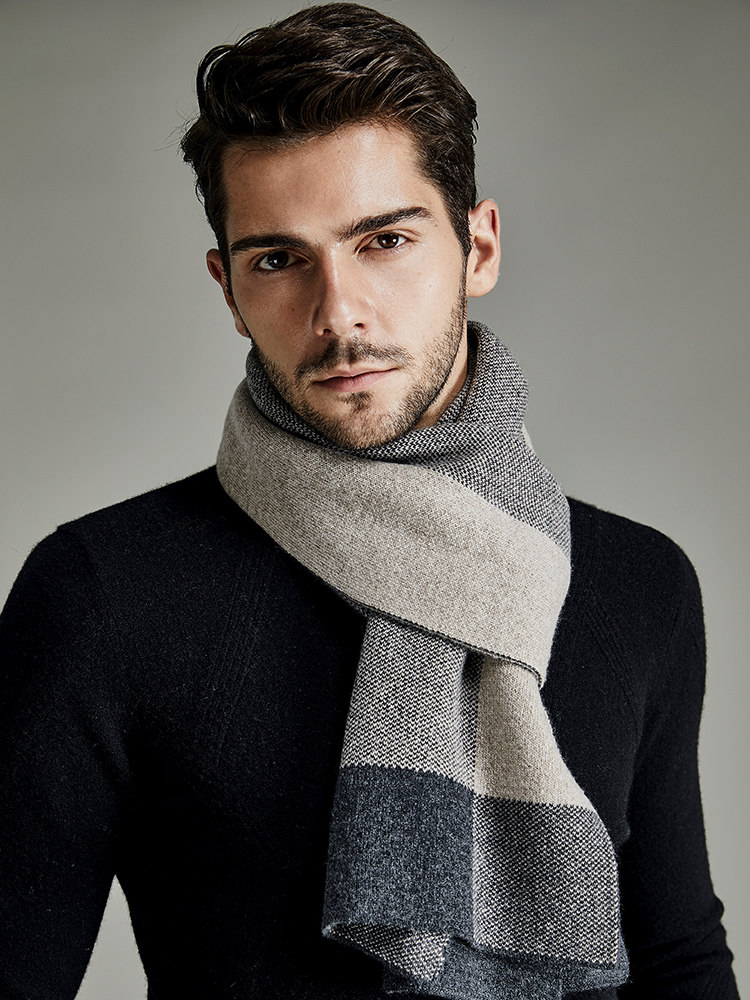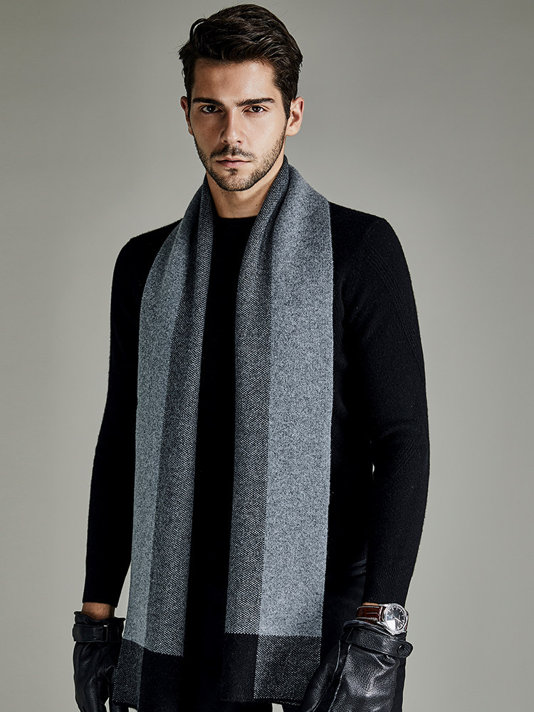 Mani high-end 100% pure cashmere scarf men's autumn and winter thickened warm plaid all-match scarf gift box