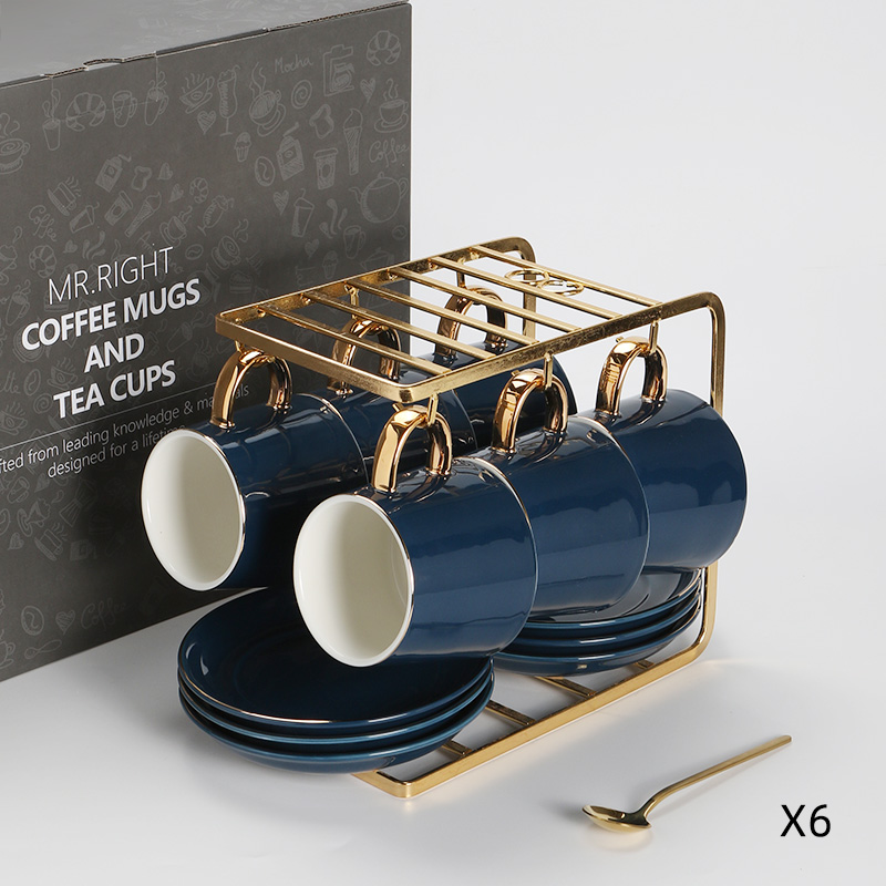 A Tower Shaped (black) 1 cup 1 Porcelain Dish 1 Black Spoon A Tata shape (green) 1 cup 1 Porcelain Dish 1 Gold Spoon A Tal Shape (Blue) 1 Cup 1 Porcelain Dish 1 Gold Spoon A Ta-shaped (White) 1 Cup