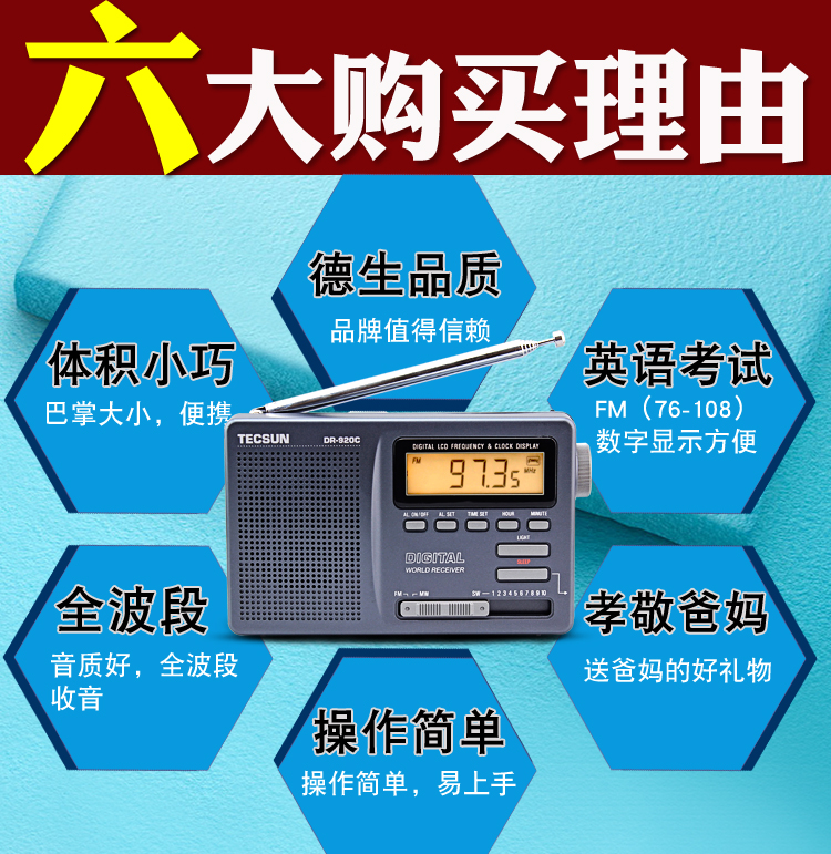 Tecsun Desheng PL380 English listening college entrance examination special student radio FM University four or six