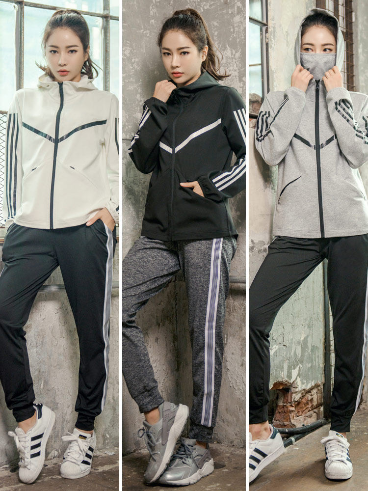 White two-piece set Black Two-piece set Gray Two-piece set White Short sleeve three-piece set(black pants) Black short sleeve three-piece set White short sleeve three-piece set (gray pants) White three-piece set