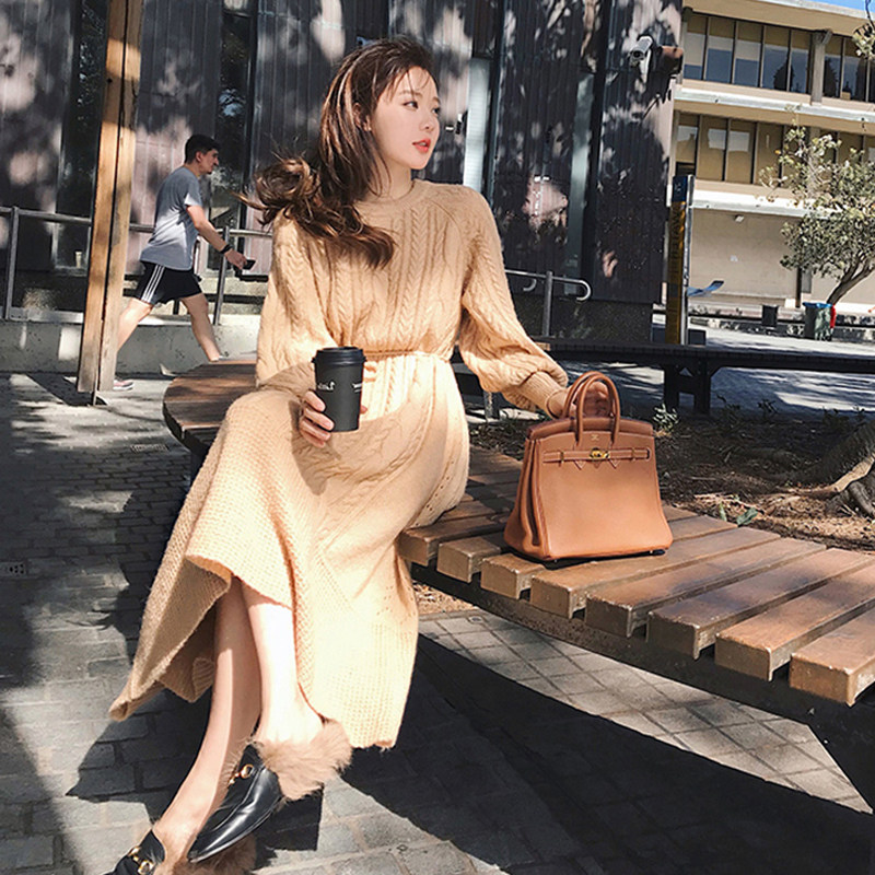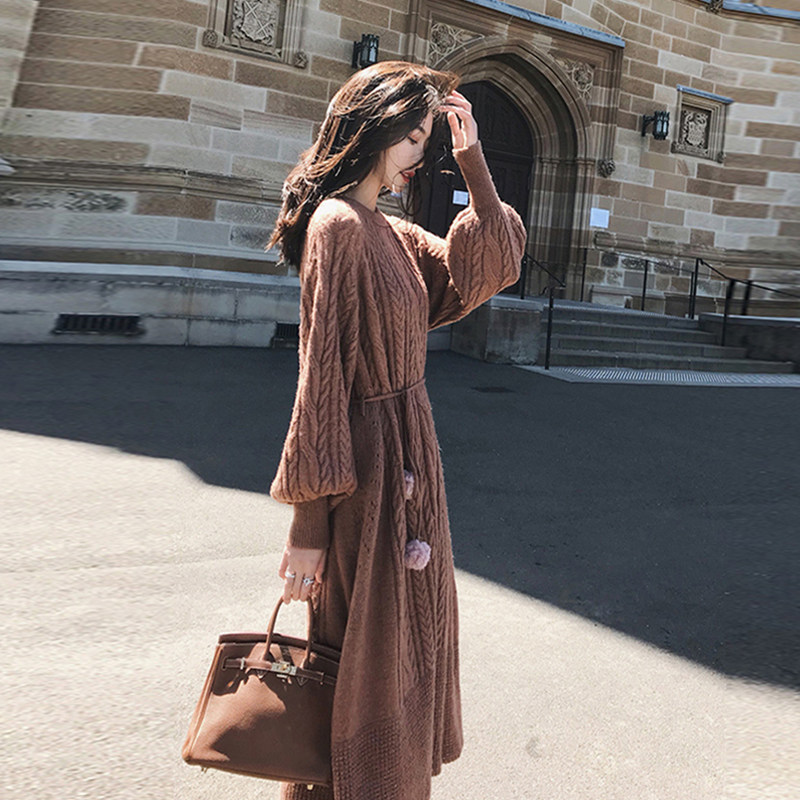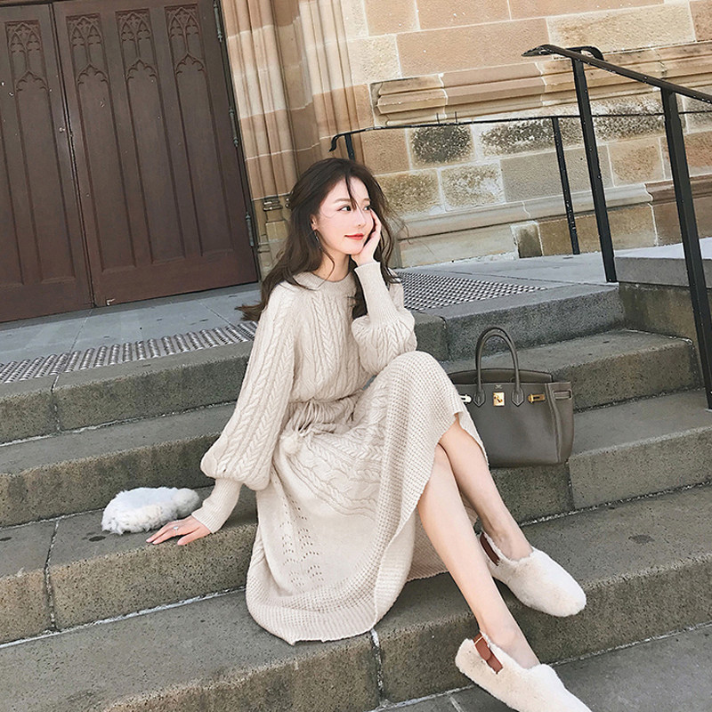 The dress inside the dress The dress was in the middle of a long version of the sweater dress and the bottom knit the women's autumn and winter temperament.