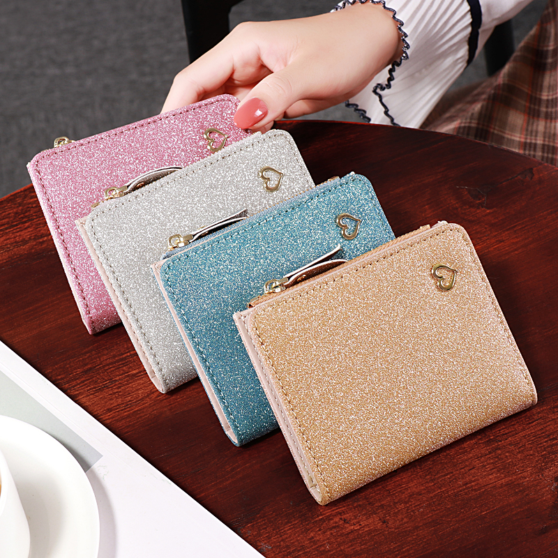 2022 small fresh lady's wallet female short student cute Korean version three-fold multi-functional coin purse wallet tide
