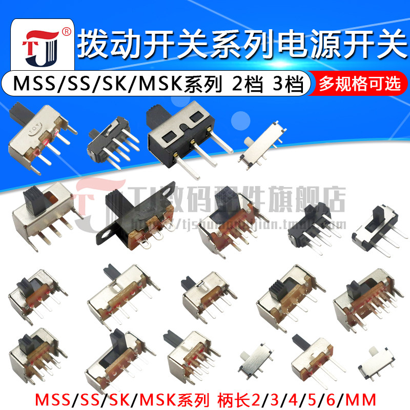 Toggle switch single double row straight plug horizontal small micro power switch sliding gear fluctuation band 2 stalls 3 stalls