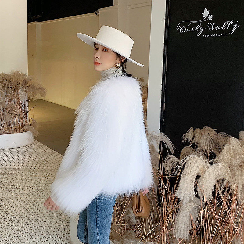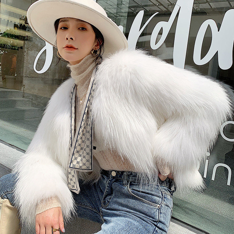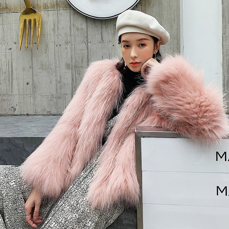 Raccoon fur woven fur straw jacket female short length sleeves Skinder Han version Henin 2021 Winter new fox Mao