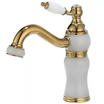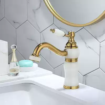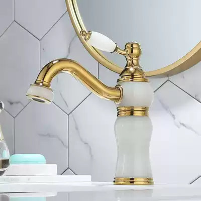 Nordic light luxury all copper plus natural jade hot and cold washbasin faucet wash basin brass gold splash-proof faucet