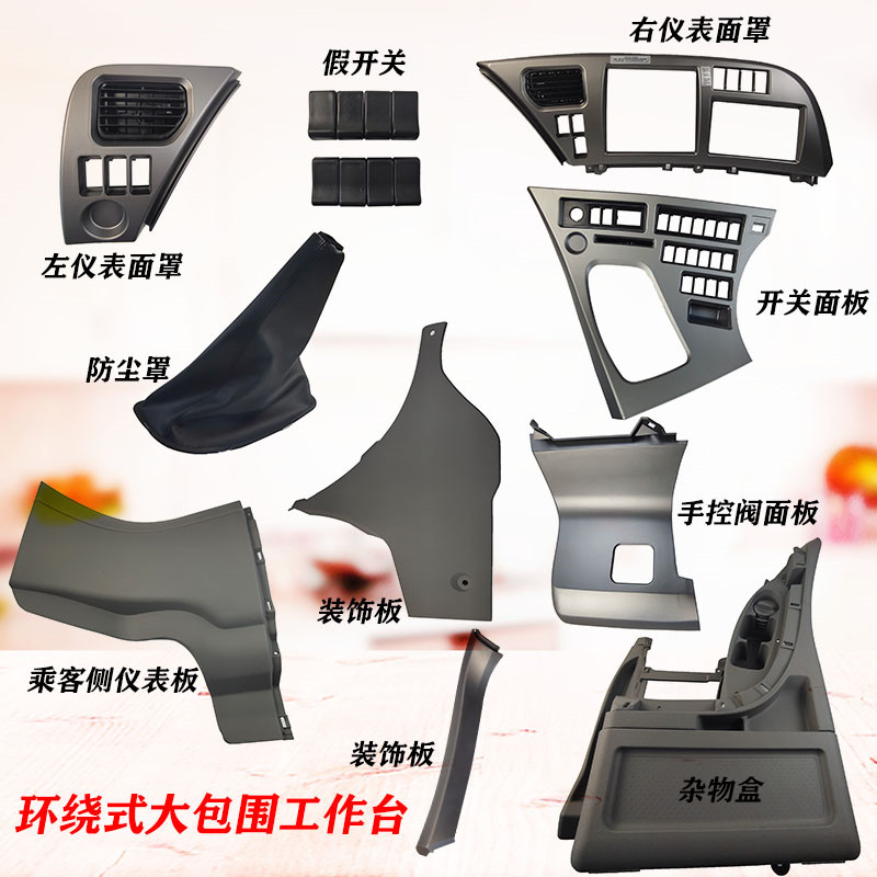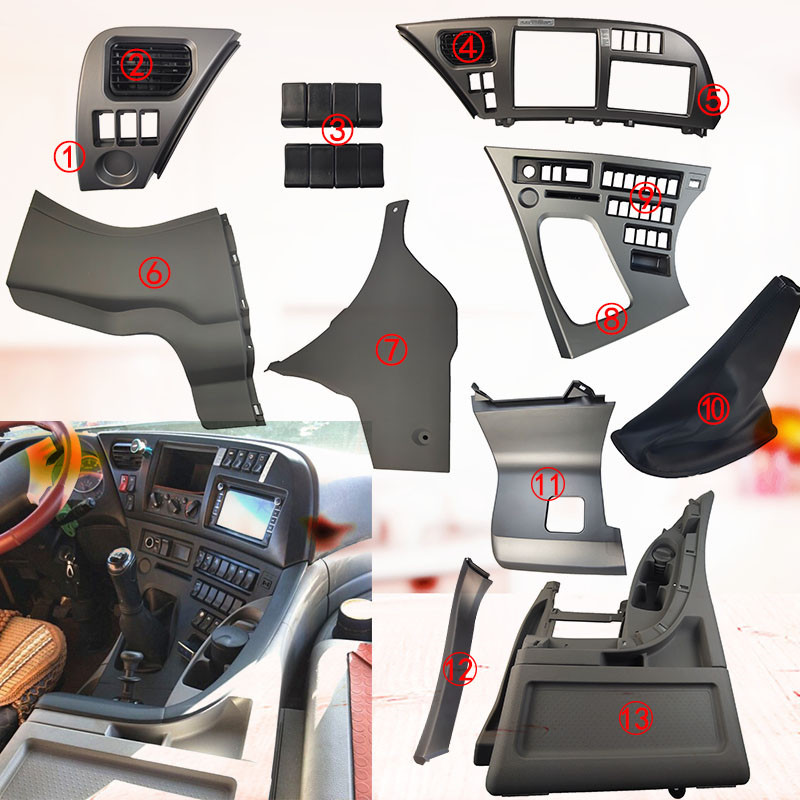 Surround-style bench set of 1) left meter mask (2) Air conditioning vent left (10) false switch (10) 4 air conditioning vent right (5) right meter mask (6) for passenger side meter plate (7) plate (8) switch panel (s)