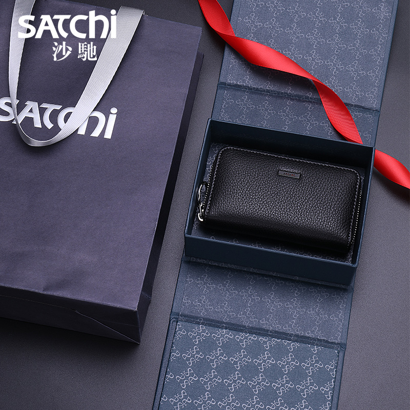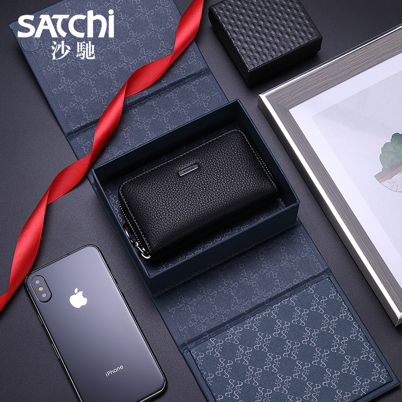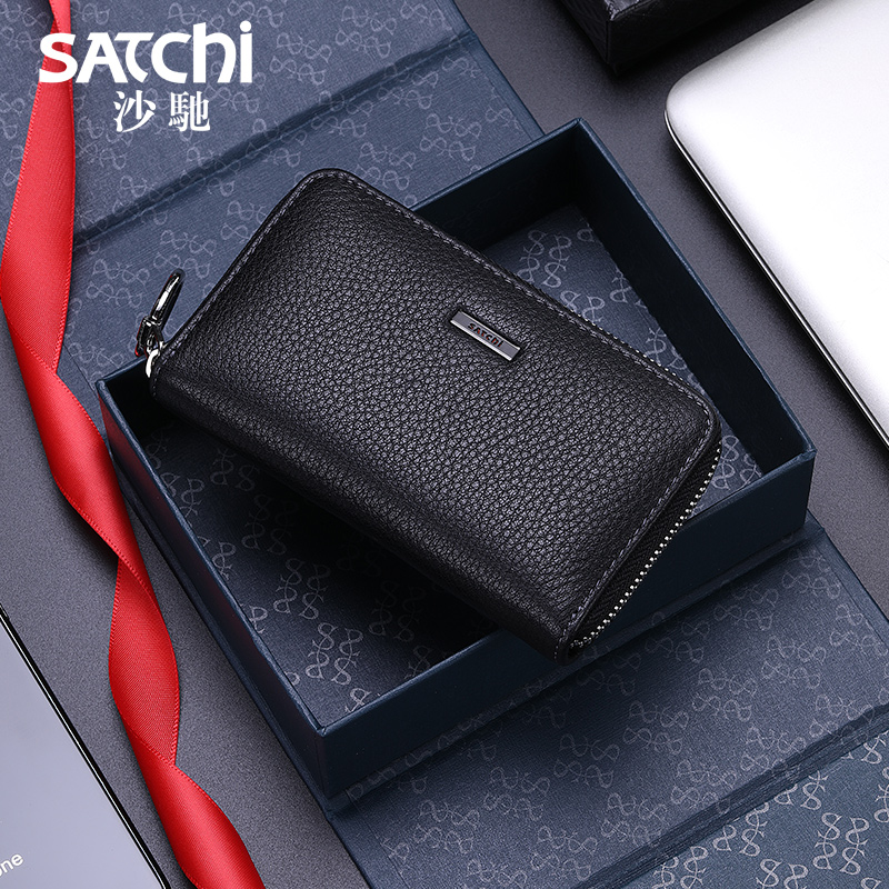 Sanchi new key bag Male genuine leather zipper Large capacity key bag Bull Leather Multi-Position Feature Lock Spoon Bag Universal-Taobao