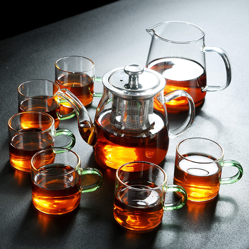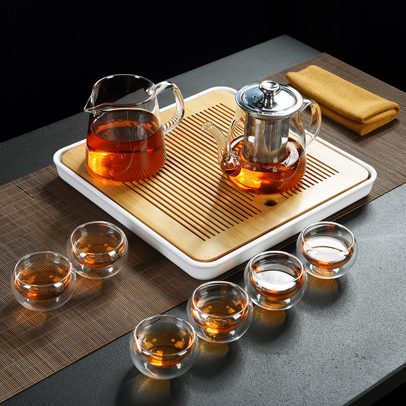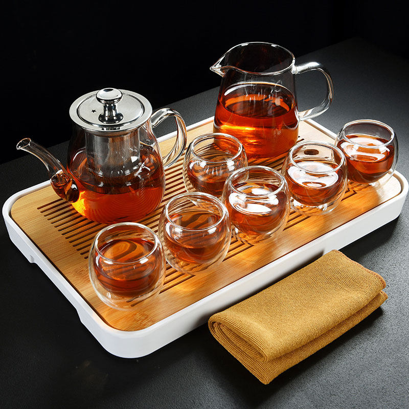 Old Wingle thick transparent glass kung fu tea set set household liner filter cooking teapot tea cup gift tea tray