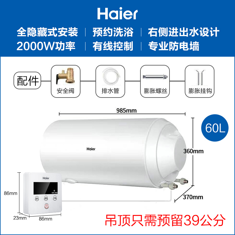 Haier Water Heater Electric Home 60 Litres Total Hidden Water Storage Side Water Outlet Wire Control Panel Makeup Room Overhanging Ceiling Concealed
