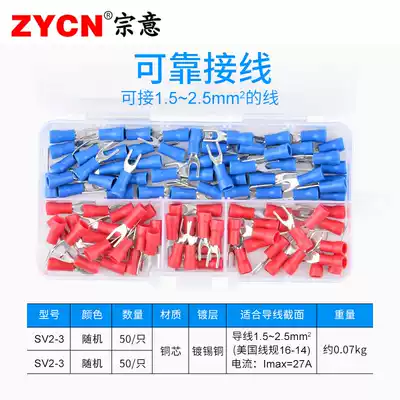 Boxed SV2-3 Fork-shaped pre-insulated terminal cold-pressed terminal lug U-shaped Y-shaped terminal 100 pcs