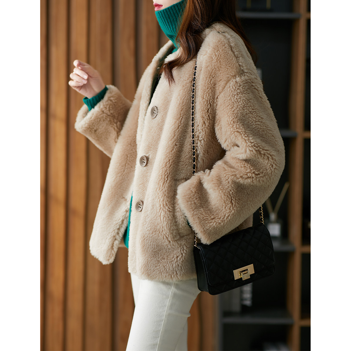 U House Cashmere Coat Woman 2022 Winter New Short Lamb Pellet Cashmere Fur Coat Young Clothes