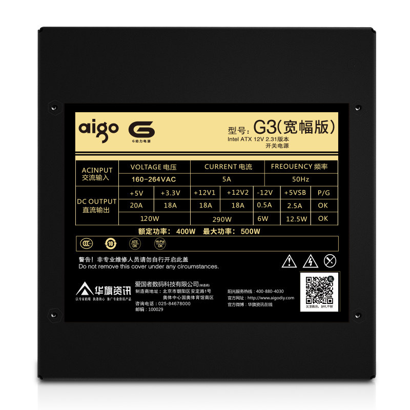 aigo Patriot G3 Desktop Computer Mainframe Power Supply Wide silent Back line Power Supply Rated 400W Peak 500W Active ATX power supply