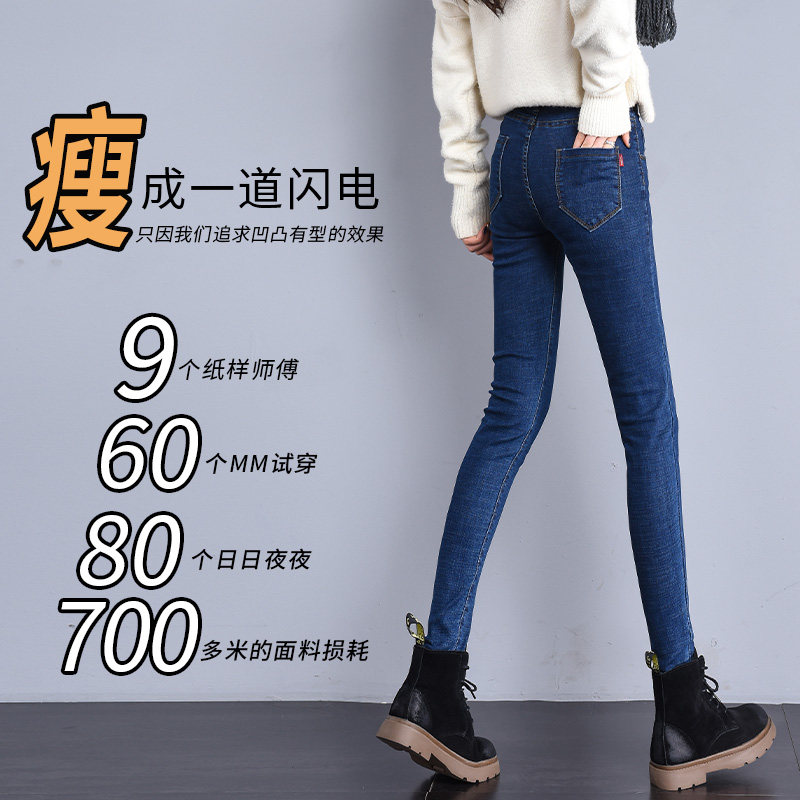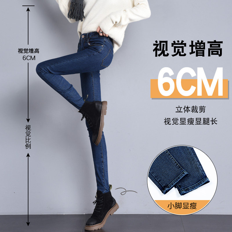 Smoke - gray high waist jeans woman 2021 new tight black narrow tube tight pants repair slim elastic pants