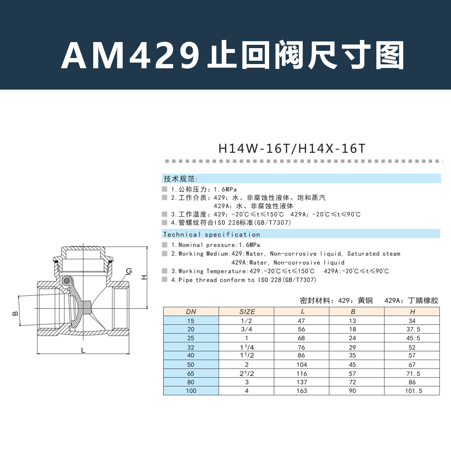 EMEC Brass Check Valve 429A Thick Brass Rubber Seal H14W-16T Check Valve 4 minutes 6 minutes 1 inch