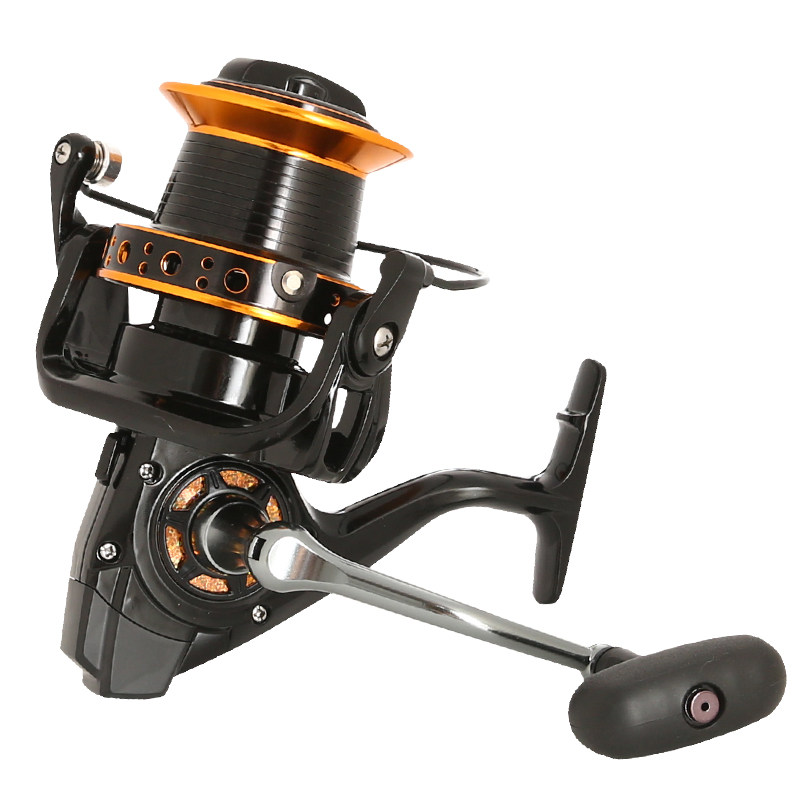 The direction of the handle of the fishing wheel: