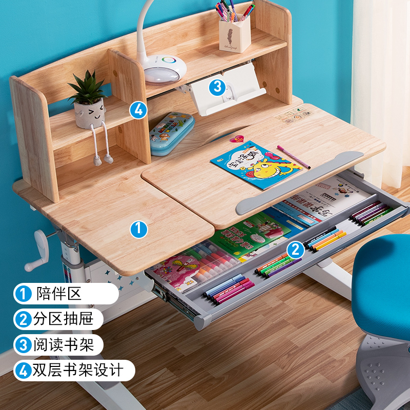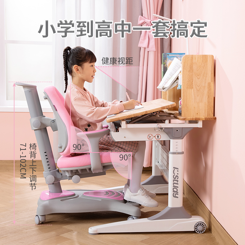 Love Learning Children Study Desk Desk Desk Desk And Chairs Suit Male Girl Students can lift home solid wood V100