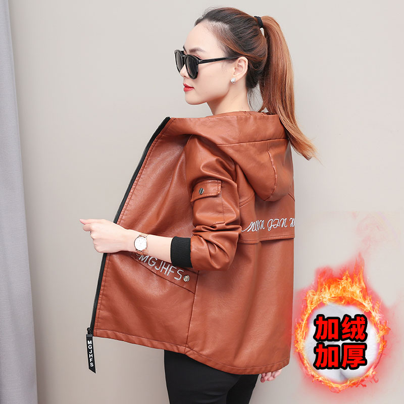 Short leather women's 2021 autumn new leather jacket velvet thickened winter loose Korean version wild small jacket